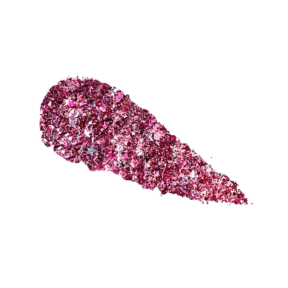 Illuminate your cosmic vibe with our Cosmic Burst Celestial Rose, a rose pink glitter gel packed with holographic star that sparkle like distant galaxies. Perfect for face, hair, and body, this celestial glitter gel offers a soft jasmine scent and washes off easily — leaving nothing but stardust and radiance. Shine like the stars with a touch of cosmic pink radiance!