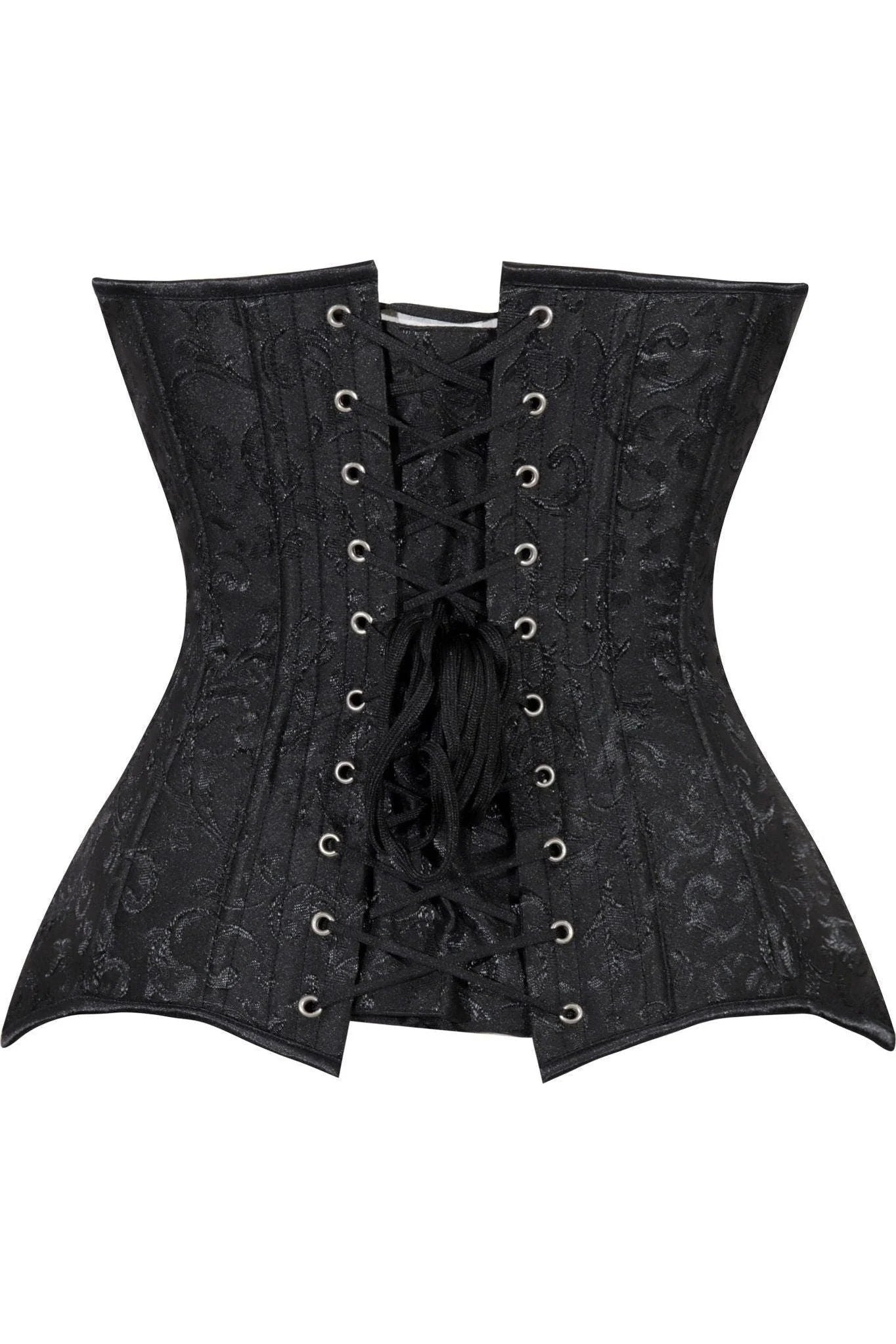 Lavish Black Brocade Overbust Corset W/Busk Closure