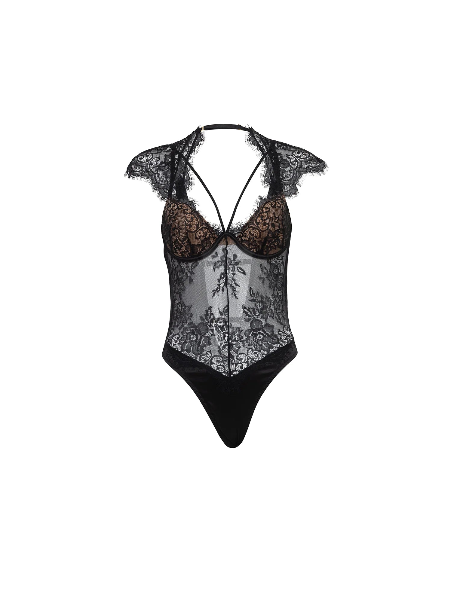 - CAP SLEEVE EYELASH LACE TEDDY WITH STRAP DETAIL
