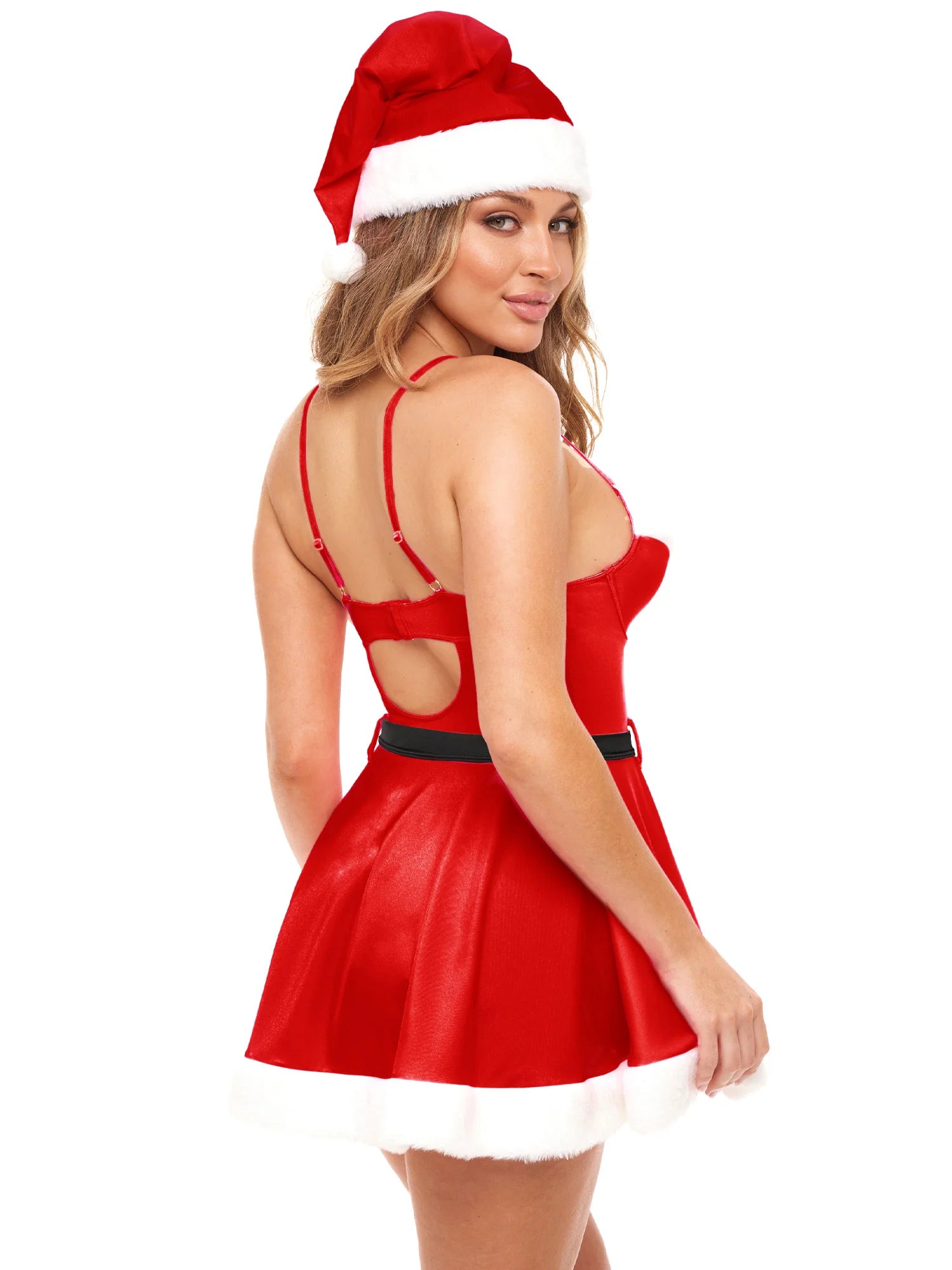 Add some playful allure to your holiday wardrobe with our sexy Santa Babydoll Lingerie & Hat Set. Perfect for cozy winter nights, this Santa babydoll set combines festive cheer with a steamy edge. Featuring plush underwire cups trimmed with soft, luxurious fur, this piece offers both support & a touch of indulgence. The rich velvet bodice hugs your curves for a cozy, irresistible look that feels as good as it looks. Standard adjustable shoulder straps ensure the perfect fit, so you can feel comfortable & confident all night long. Complete with a matching Santa hat, this sexy Santa lingerie set is designed to make you feel fabulously festive & undeniably sexy. By embracing the spirit of the season with confidence & style in Santa Claus lingerie, you’ll make this holiday one to remember!
